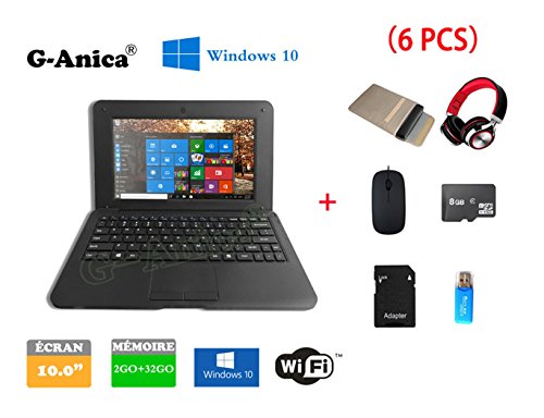 ce qui est caractéristique et spécification complète de G-Anica® Netbook Ordinateur portable HDMI écr.10"- (Wifi, Ethernet, 1.5GHz,RAM 32Go RAM 2Go)Tablette-Win10,Sac d'ordinateur portable + Souris + Adapter + carteSD + lecteurde carte + Casque(6 PCS Accessoires) (Noir) ? cliquez sur lien ci-dessous
